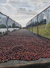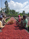Processing involves picking ripe red cherries and presorting and then drying on a raised African bed. After checking moisture and finishing more defect sorting, they put the coffees with Jemfel (dried pods) in a warehouse.